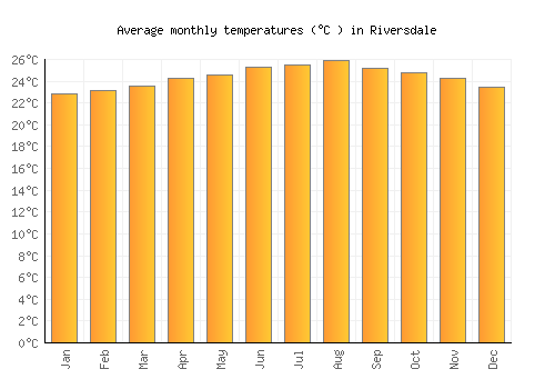 The bar chart below shows the average monthly peak daytime temperatures at Riversdale