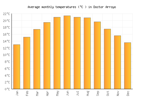 Average annual rainfall in Doctor Arroyo: 385.6mm (151.8 inches)