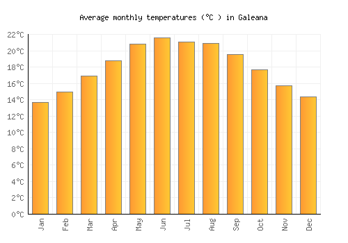 The bar chart below shows the average monthly peak daytime temperatures at Galeana