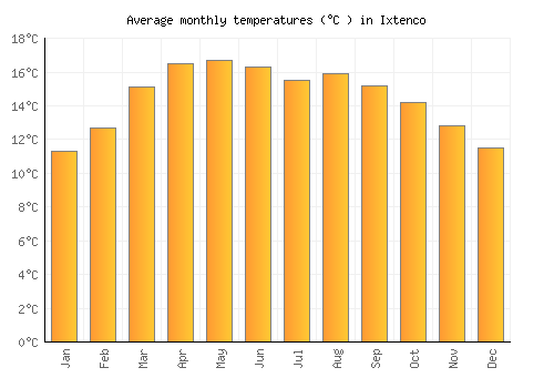 The bar chart below shows the average monthly peak daytime temperatures at Ixtenco