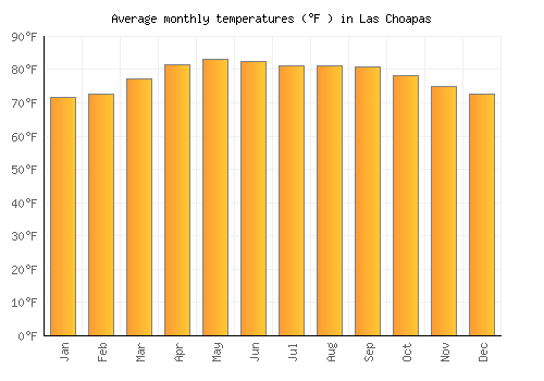 The bar chart below shows the average monthly peak daytime temperatures at Las Choapas