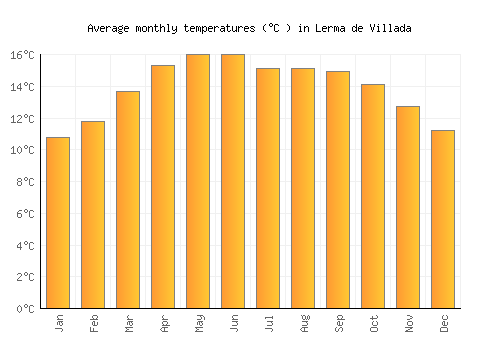 The bar chart below shows the average monthly peak daytime temperatures at Lerma de Villada