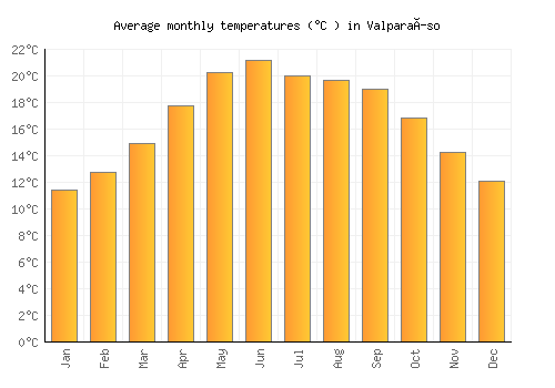 The bar chart below shows the average monthly peak daytime temperatures at Valparaíso