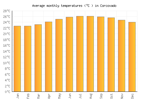 The bar chart below shows the average monthly peak daytime temperatures at Corcovado