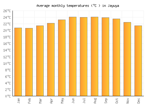 The bar chart below shows the average monthly peak daytime temperatures at Jayuya