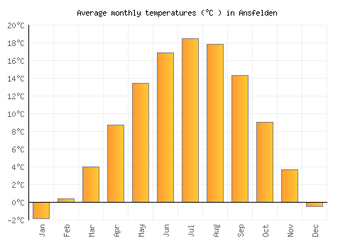 The bar chart below shows the average monthly peak daytime temperatures at Ansfelden