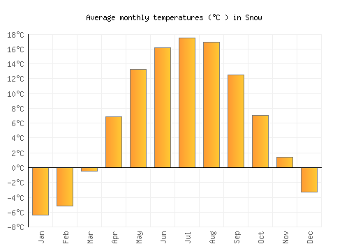 The bar chart below shows the average monthly peak daytime temperatures at Snow