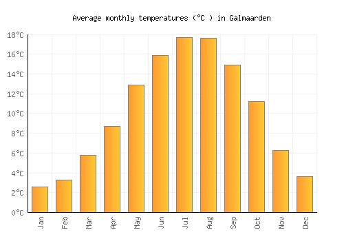 The bar chart below shows the average monthly peak daytime temperatures at Galmaarden