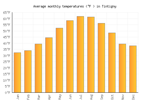 | Max °F | 32.5 | 34.2 | 39.6 | 44.6 | 52.5 | 58.5 | 61.9 | 61.5 | 56.3 | 48.4 | 39.4 | 37.9 |