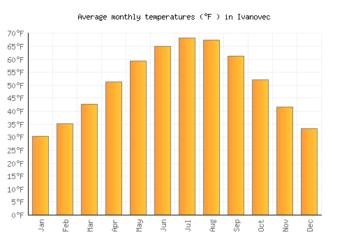 The bar chart below shows the average monthly peak daytime temperatures at Ivanovec