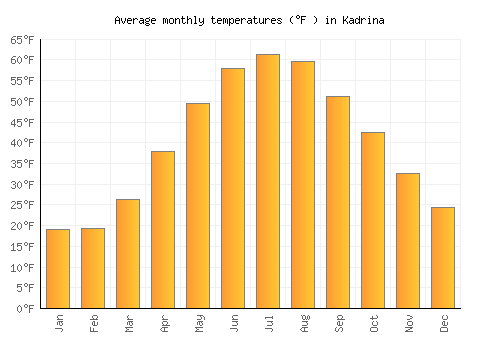 The bar chart below shows the average monthly peak daytime temperatures at Kadrina