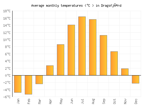 The bar chart below shows the average monthly peak daytime temperatures at Dragsfjärd