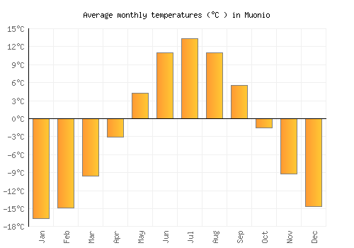 The bar chart below shows the average monthly peak daytime temperatures at Muonio