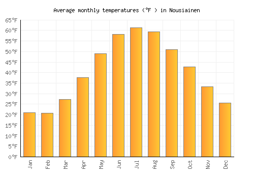 The bar chart below shows the average monthly peak daytime temperatures at Nousiainen