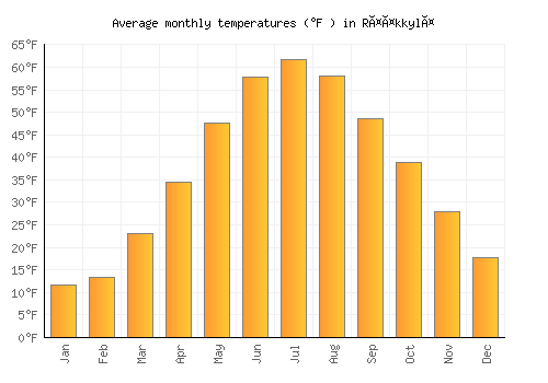 The bar chart below shows the average monthly peak daytime temperatures at Rääkkylä