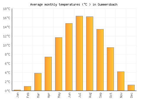 The bar chart below shows the average monthly peak daytime temperatures at Gummersbach