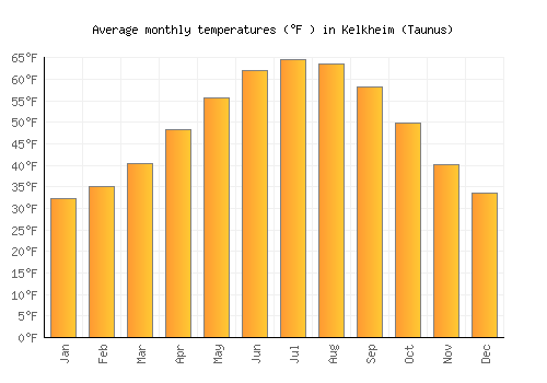The bar chart below shows the average monthly peak daytime temperatures at Kelkheim (Taunus)