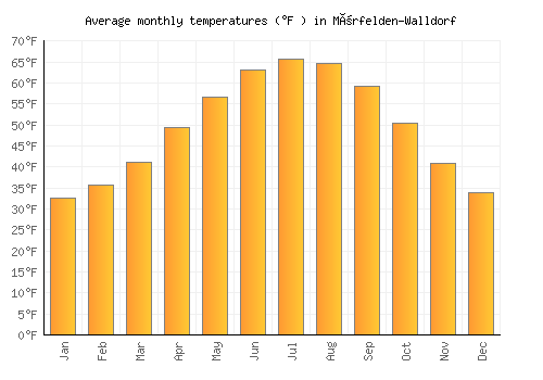 The bar chart below shows the average monthly peak daytime temperatures at Mörfelden-Walldorf