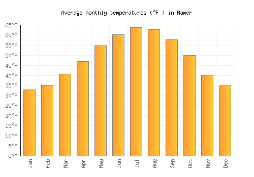 The bar chart below shows the average monthly peak daytime temperatures at Mamer