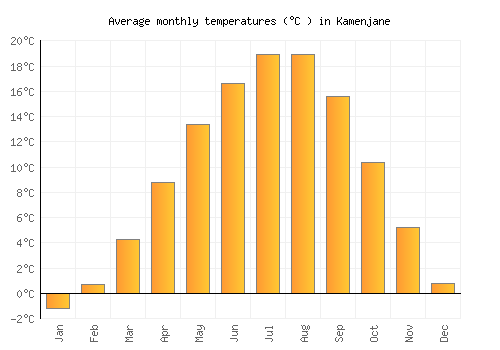 Average annual rainfall in Kamenjane: 886.534mm (349 inches)
