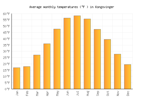 The bar chart below shows the average monthly peak daytime temperatures at Kongsvinger