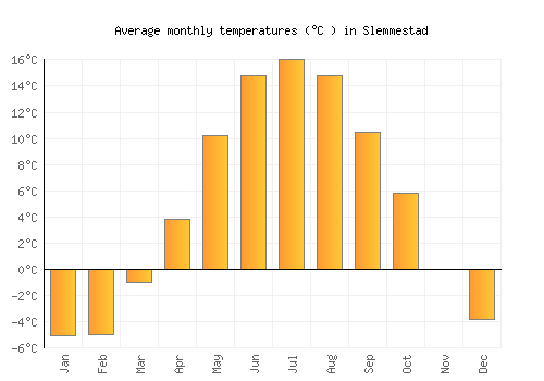 The bar chart below shows the average monthly peak daytime temperatures at Slemmestad