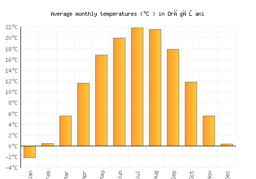 The bar chart below shows the average monthly peak daytime temperatures at Drăgăşani