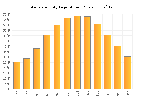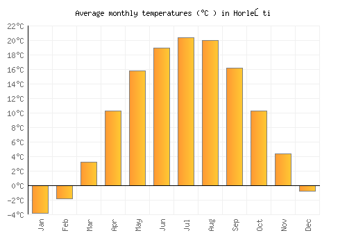 The bar chart below shows the average monthly peak daytime temperatures at Horleşti