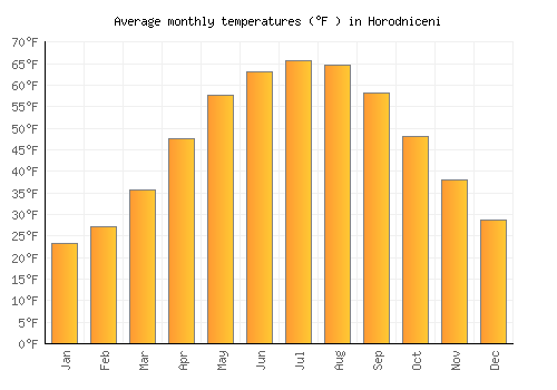 The bar chart below shows the average monthly peak daytime temperatures at Horodniceni