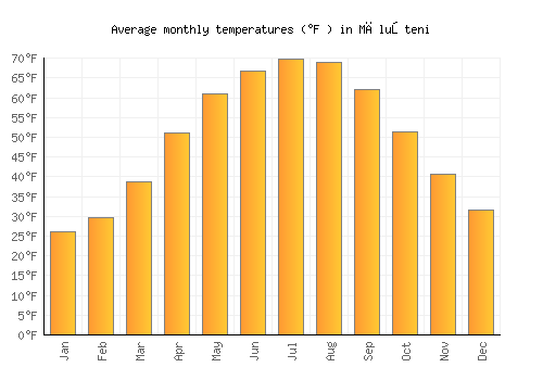 The bar chart below shows the average monthly peak daytime temperatures at Măluşteni