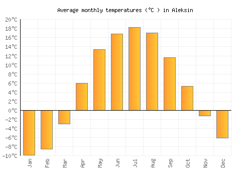 The bar chart below shows the average monthly peak daytime temperatures at Aleksin