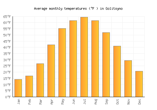 The bar chart below shows the average monthly peak daytime temperatures at Golitsyno