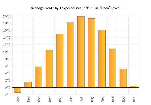 The bar chart below shows the average monthly peak daytime temperatures at Črenšovci