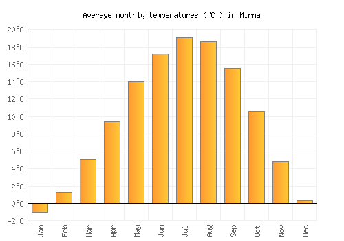 Average annual rainfall in Mirna: 1282.5mm (504.9 inches)