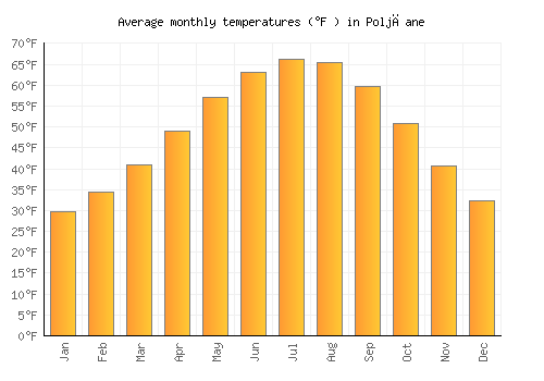 The bar chart below shows the average monthly peak daytime temperatures at Poljčane