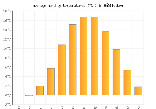 The bar chart below shows the average monthly peak daytime temperatures at Höllviken