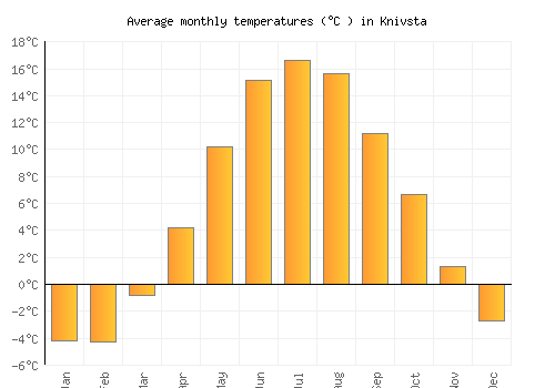 The bar chart below shows the average monthly peak daytime temperatures at Knivsta