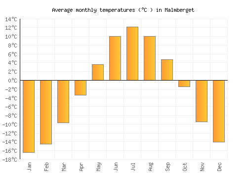 The bar chart below shows the average monthly peak daytime temperatures at Malmberget