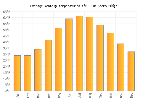 The bar chart below shows the average monthly peak daytime temperatures at Stora Höga