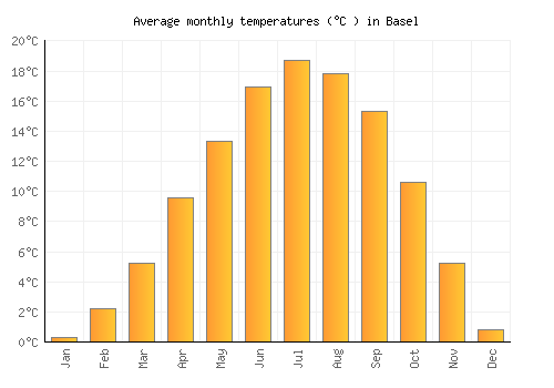 The bar chart below shows the average monthly peak daytime temperatures at Basel