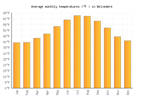 | °F | 44 | 44.6 | 49.7 | 54.2 | 61.4 | 67.2 | 70.9 | 70.3 | 65.7 | 58.5 | 49.9 | 45.8 |