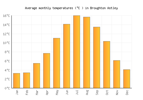 The bar chart below shows the average monthly peak daytime temperatures at Broughton Astley