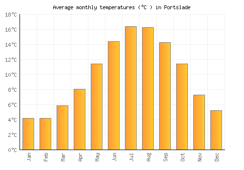 The bar chart below shows the average monthly peak daytime temperatures at Portslade