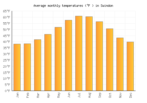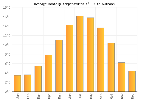 The bar chart below shows the average monthly peak daytime temperatures at Swindon