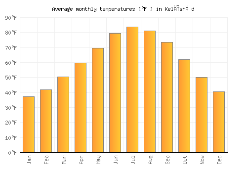 The bar chart below shows the average monthly peak daytime temperatures at Kelīshād