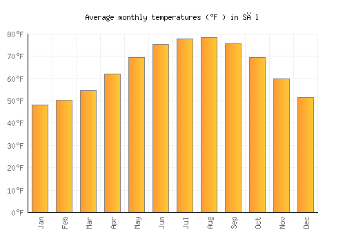 | Max °F | 48 | 50.4 | 54.7 | 62.1 | 69.3 | 75.4 | 77.9 | 78.4 | 75.6 | 69.4 | 59.9 | 51.4 |