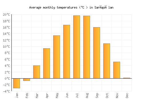 The bar chart below shows the average monthly peak daytime temperatures at Sarıoğlan