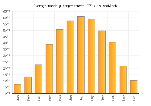 The bar chart below shows the average monthly peak daytime temperatures at Westlock