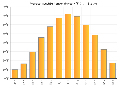 The bar chart below shows the average monthly peak daytime temperatures at Blaine