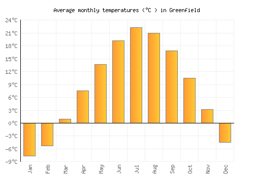 The bar chart below shows the average monthly peak daytime temperatures at Greenfield
